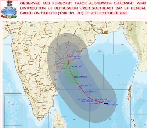The Deep Despression is Bay of Bengal is expected to move North-north westerly towards Andra coast. As per latest track by IMD it is expected to cross Kakinada by Tuesday night as a Severe Cyclonic Storm.