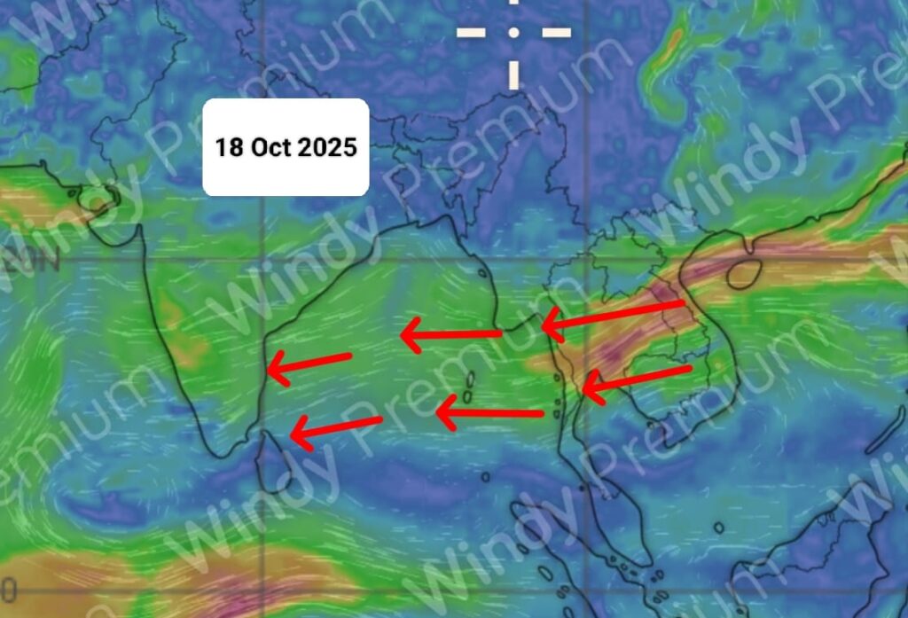 Now to the most awaited part of the season β the Northeast Monsoon. Leading numerical weather models are hinting at a possible wind reversal around 14th October across southern peninsular India. This would be followed by a surge of moisture-laden easterlies, paving the way for the onset of the monsoon over coastal Tamil Nadu around 19thβ20th October.